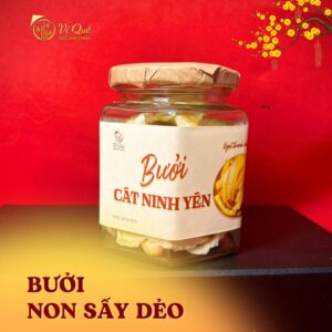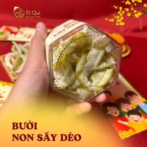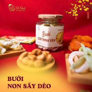 - Bưởi Non Sấy Dẻo: Chế biến từ những trái bưởi non được tuyển chọn kỹ lưỡng, sản phẩm giữ trọn vị thanh ngọt, dẻo thơm và hương thơm dịu nhẹ, mang đến trải nghiệm ẩm thực khó quên.