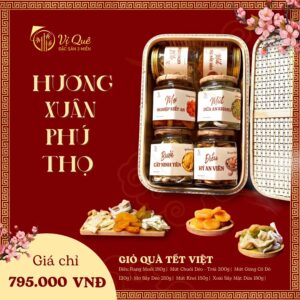“Giỏ Quà Tết Cổ Truyền 2024-HƯƠNG XUÂN PHÚ THỌGiỏ quà Tết 2024 mang tên HƯƠNG XUÂN PHÚ THỌ là món quà truyền thống đậm hương vị và ý nghĩa. Bên trong, bạn sẽ tìm thấy những món ngon như điều rang muối, mứt chuối dẻo, mứt gừng cố đô, mơ sấy dẻo, mứt kiwi, và xoài sấy mật dừa. Chiếc giỏ tre làm từ làng nghề truyền thống Hà Nội thêm vẻ đẹp và ý nghĩa cho sản phẩm. Phù hợp để tặng gia đình, bạn bè, hoặc đối tác kinh doanh trong dịp Tết