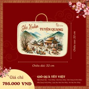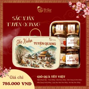 “Giỏ Quà Tết Cổ Truyền 2024-SẮC XUÂN TUYÊN QUANGGiỏ Quà Tết Cổ Truyền 2024 – Sắc Xuân Tuyên Quang là một món quà Tết sang trọng, bao gồm các sản phẩm truyền thống như mứt chuối, mứt kiwi, mứt gừng, điều rang muối, xoài sấy mật dừa và mơ sấy dẻo. Sản phẩm được sắp xếp đẹp mắt trong một giỏ tre thủ công từ làng nghề truyền thống Hà Nội, mang đến không chỉ hương vị ngon miệng mà còn giá trị văn hóa đặc biệt. Sản phẩm phù hợp để tặng cho gia đình, bạn bè và đối tác kinh doanh trong dịp Tết, thể hiện lòng biết ơn và chúc phúc tốt đẹp cho năm mới.