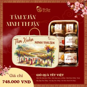 “Giỏ Quà Tết Cổ Truyền 2024-TÂM XUÂN NINH THUẬN Giỏ quà Tết Tâm Xuân Ninh Thuận 2024 là sự kết hợp tinh tế giữa truyền thống và sự đổi mới. Bên trong, bạn sẽ tìm thấy một loạt mứt và trái cây sấy khô ngon miệng, cùng với một chiếc giỏ tre thủ công độc đáo. Sản phẩm mang thông điệp “”Ninh Thuận, Xuân tâm – An lạc, thịnh vượng.”” và là món quà Tết lý tưởng để chia sẻ niềm vui và ấm áp trong mùa xuân