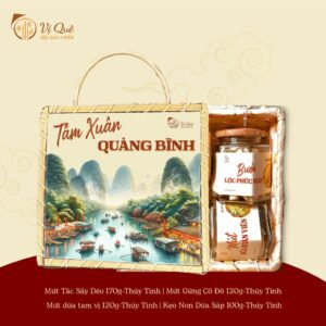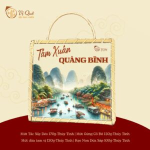 DÁNG XUÂN QUẢNG BÌNH là giỏ quà Tết độc đáo, mang đậm bản sắc vùng miền và tinh hoa truyền thống Việt Nam. Với thiết kế tinh tế và các sản phẩm chất lượng cao, đây là món quà lý tưởng để gửi gắm lời chúc An Khang – Hạnh Phúc – Thịnh Vượng đến người thân, bạn bè và đối tác trong dịp đầu năm mới.