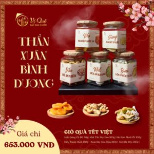 Giỏ Quà Tết Cổ Truyền 2024 – THẦN XUÂN BÌNH DƯƠNG mang trong mình hương vị truyền thống và tinh thần Tết Bình Dương. Với những món đặc sản độc đáo như Mứt Gừng Cố Đô, Mứt Tắc Sấy Dẻo, Me Rim Muối Ớt, Điều Rang Muối, Xoài Sấy Mật Dừa và Mơ Sấy Dẻo, sản phẩm này là lựa chọn hoàn hảo để tặng cho người thân và bạn bè trong dịp Tết. Chiếc giỏ tre làm thủ công từ làng nghề Hà Nội thêm phần sang trọng và ý nghĩa. Hãy mang đến niềm vui và sự truyền thống của Tết với Giỏ Quà Tết Thần Xuân Bình Dương này.