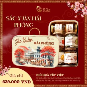 SẮC XUÂN HẢI PHÒNG là giỏ quà Tết đặc biệt, kết hợp hài hòa giữa nét đẹp Xuân của thành phố cảng Hải Phòng và những hương vị truyền thống đậm chất Việt. Với các món ngon được chọn lọc kỹ lưỡng và trình bày trong chiếc giỏ tre thủ công từ làng nghề Hà Nội, đây là món quà ý nghĩa để gửi gắm lời chúc phúc, an khang đến người thân, bạn bè và đối tác trong dịp Tết.