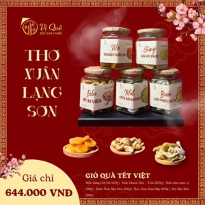 “Giỏ Quà Tết Cổ Truyền 2026-THƠ XUÂN LẠNG SƠNuà Tết độc đáo với các món ngon truyền thống và đặc sản của Lạng Sơn. Bao gồm mứt gừng, mứt chuối, mứt dừa tam vị, bưởi non sấy, kẹo dừa sáp, và mơ sấy. Sản phẩm được bày trí trong chiếc giỏ tre làm từ làng nghề truyền thống Hà Nội, thể hiện tình yêu với văn hóa Việt Nam. Sự lựa chọn hoàn hảo để tặng trong dịp Tết, mang đến lời chúc mừng năm mới tràn đầy thơ mộng và may mắn.Mứt Gừng Cố Đô 120g: Mứt gừng truyền thống với hương vị đặc biệt.