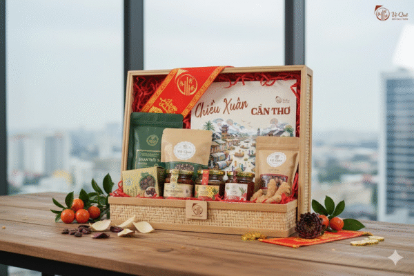 - Giải pháp từ Vị Quê (Vique Gifts): Chúng tôi tự hào mang đến các giỏ quà tết đặc sản như “Mộng Xuân Lào Cai” hay “Tình Xuân Hà Nam”. Mỗi giỏ quà là sự kết tinh của hương vị quê hương (thịt trâu gác bếp, lạp xưởng, mứt mơ, trà Shan Tuyết…), được đóng gói sang trọng, chỉn chu. Đây là món quà mang “hồn Tết Việt” thực sự, khác biệt hoàn toàn với các giỏ quà công nghiệp.